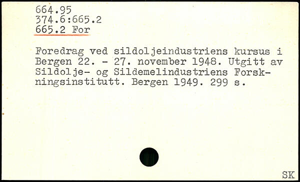 Poredrag ved siidoljeindustriens kursus i Bergen 22. - 27. november 1948. Utgitt av Siidolje- og Sildemelindustriens Forskningsinstitutt.