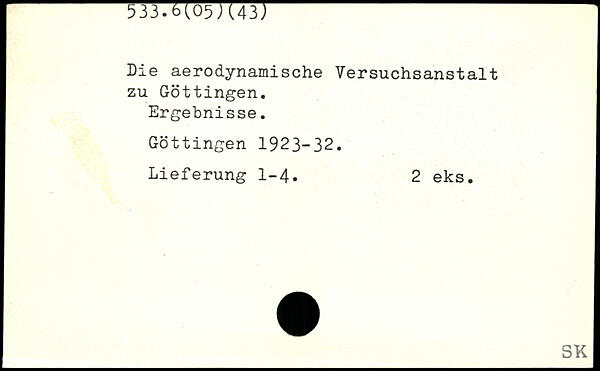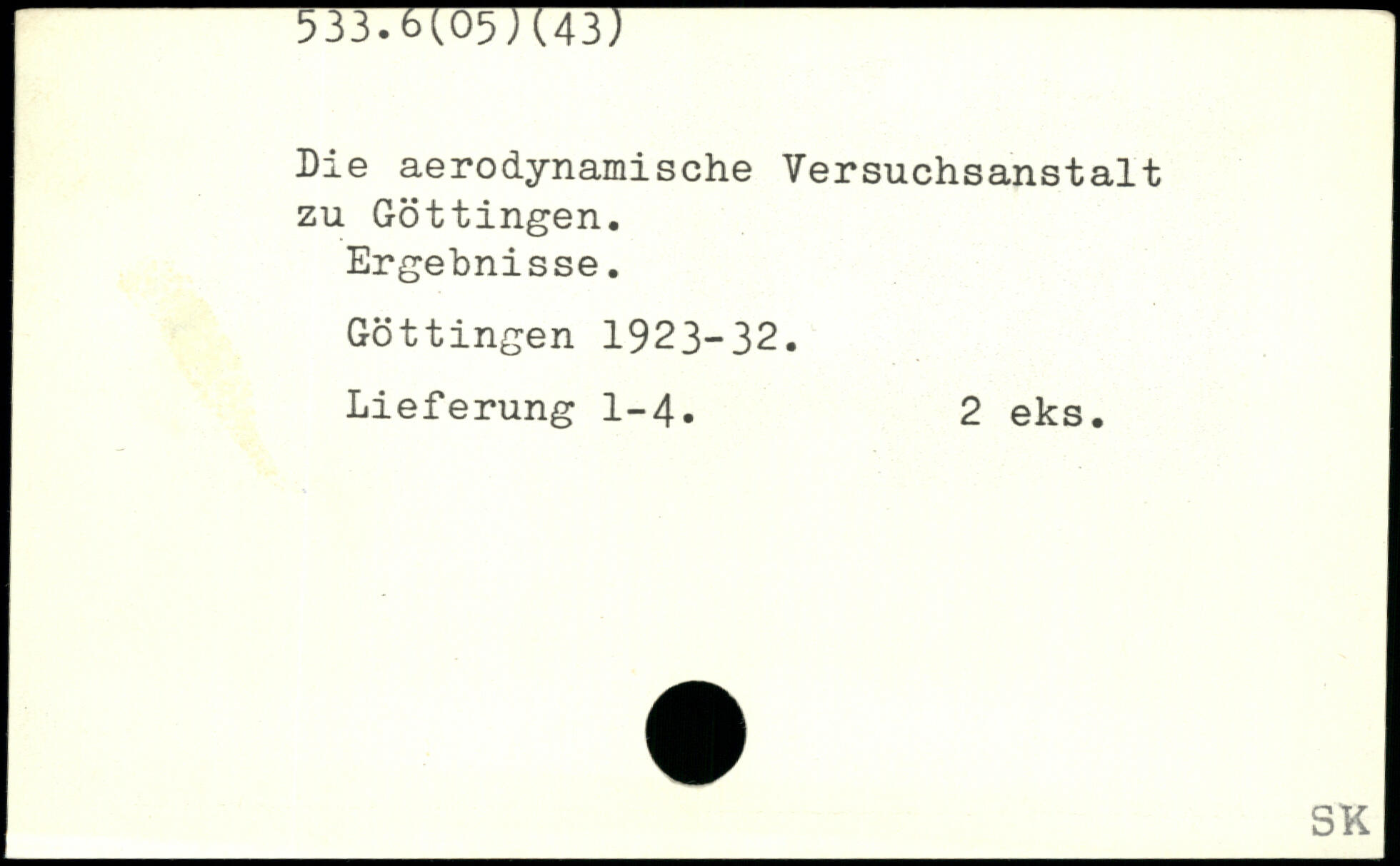 Die aerodynamische Versuchsanstalt zu Göttingen. Ergebnisse. Göttingen 1923-32. Lieferung 1-4. 2 eks. _!L