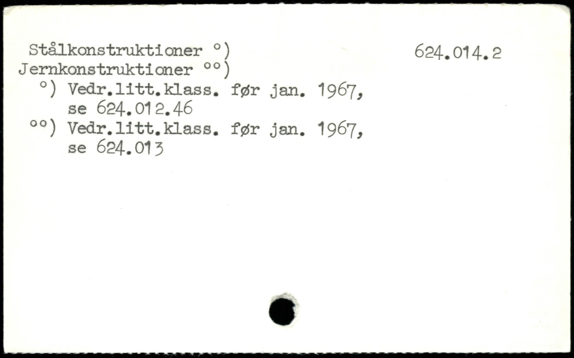 Jernkonstruktioner ..) .) Vedr.litt.klass, før jan. 1967, se 624.Ol2.46 00) Vedr.litt.klass, før jan. 1967, se 624.013