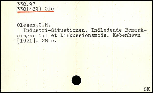 Industri-Situationen. Indledende Bemærkninger til et Diskussionsmøde.