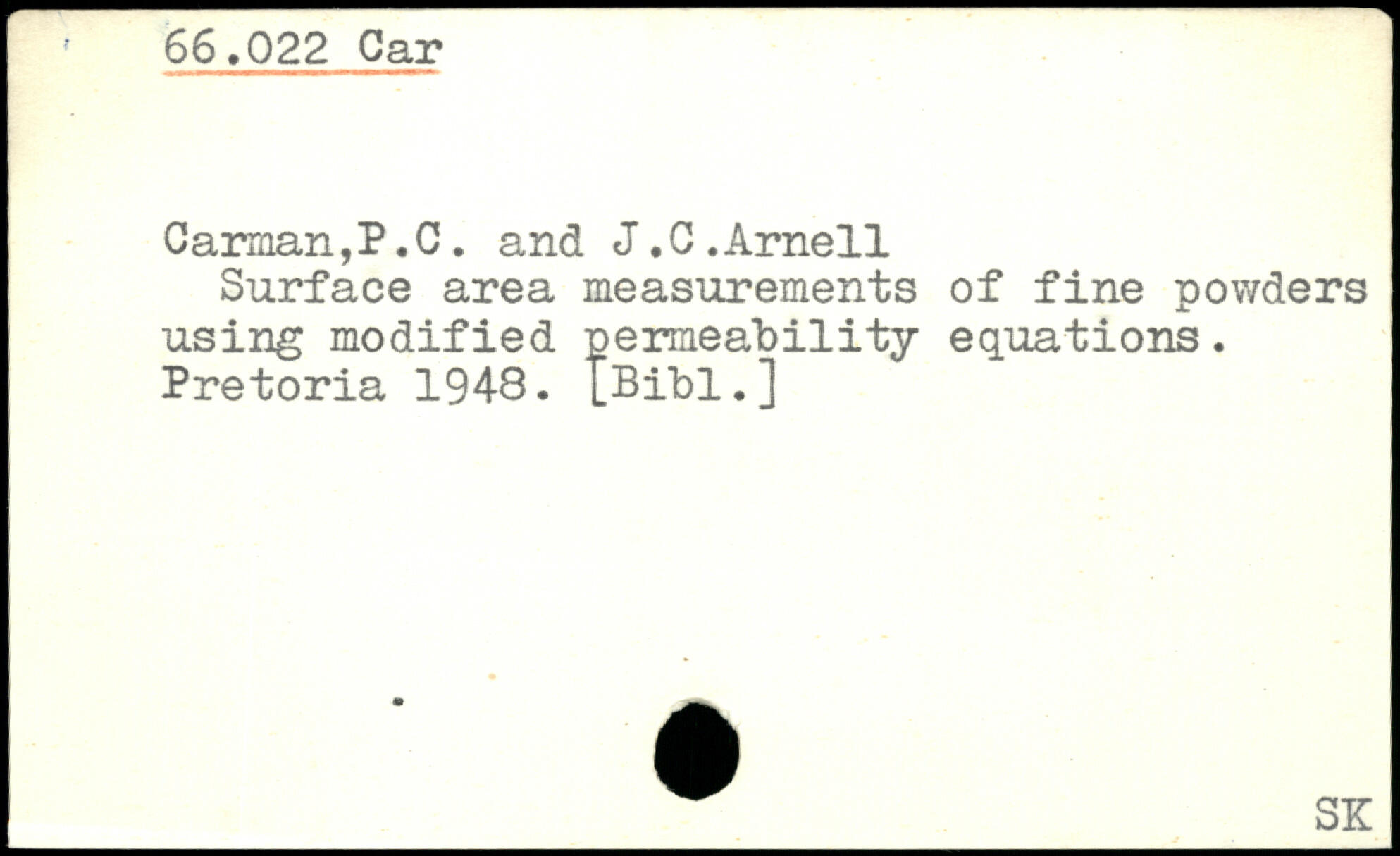 Surface area measurements of fine powders using modified permeability equations. Pretoria 1948. LBibl.]