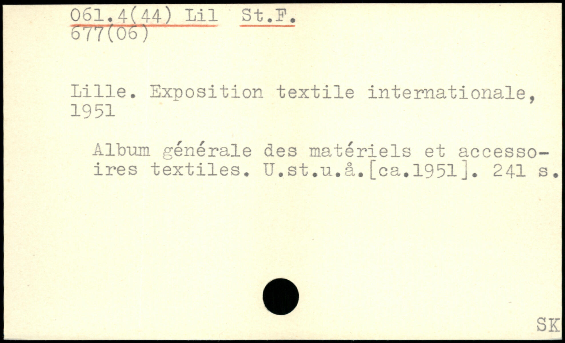 s77ror>- - Lille. Exposition textile internationale, 1951 Album générale des matériels et accessoires textiles. U.st.u.â.[ca.1951j.