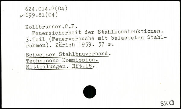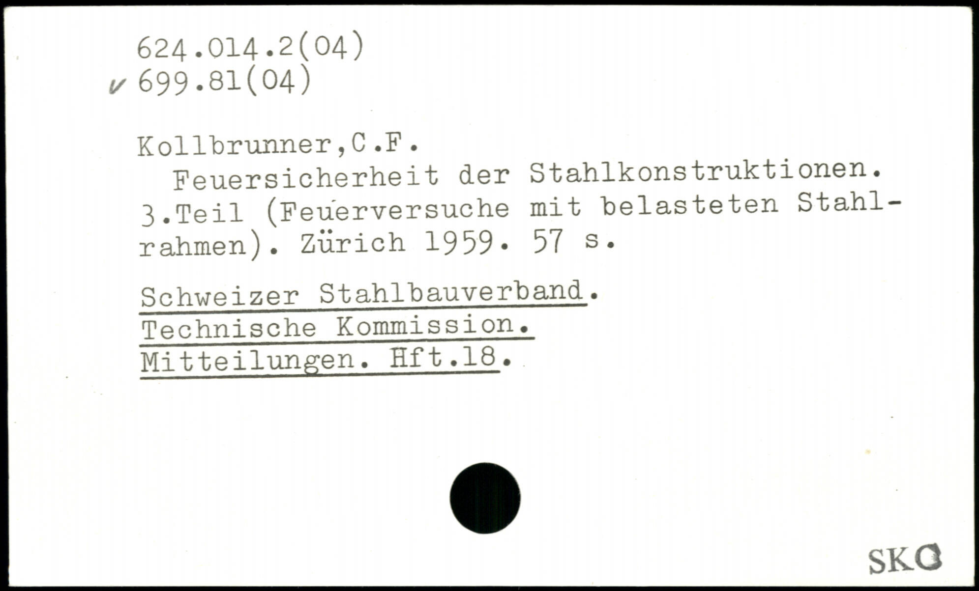 Feuersicherheit der Stahlkonstruktionen. 3.Teil (Feuerversuche mit "belasteten Stahlrahmen). Zürich 1959