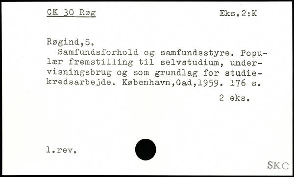 Samfundsforhold og samfundsstyre. Populær fremst1111ng til selvstudium, undervisningsbrug og som grundlag for studiekredsarbejde.