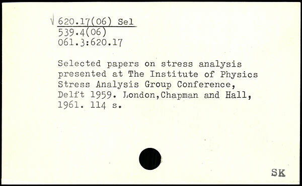 Selected papers on stress analysis presented at The Institute of Physics Stress Analysis Group Conference, Delft 1959.