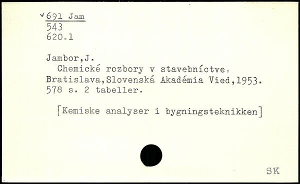 Chemické rozbory v stavebnictve, Bratislava,Slovenskå Akadémia Vied,1953, 578 s. 2 tabeller.