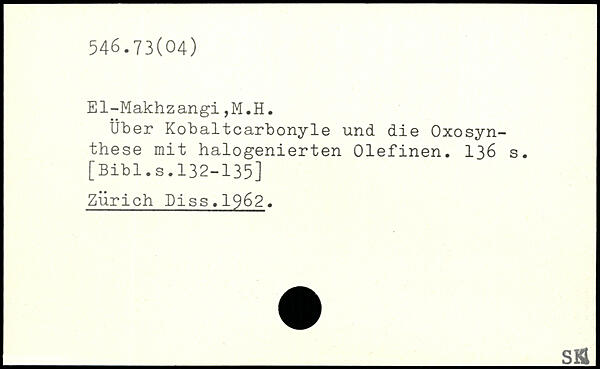 Über Kobaltcarbonyle und die Oxosyn-these mit halogenierten Olefinen.