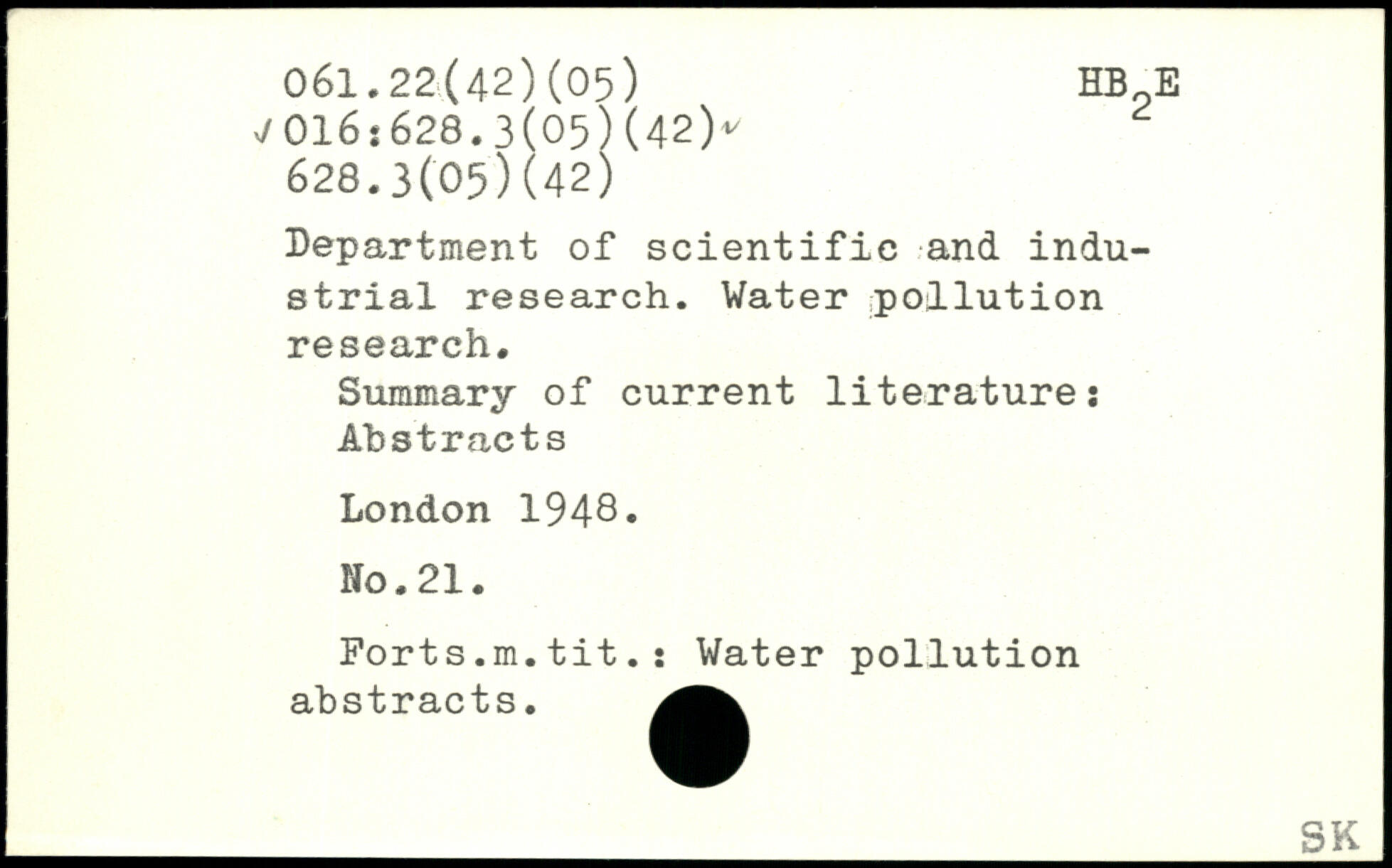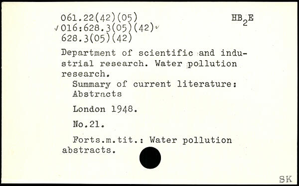 Department of scientific and industrial research. Water pollution research. Summary of current literature: Abstracts