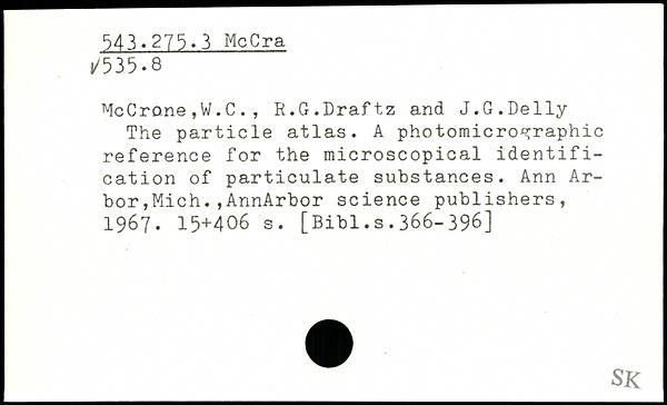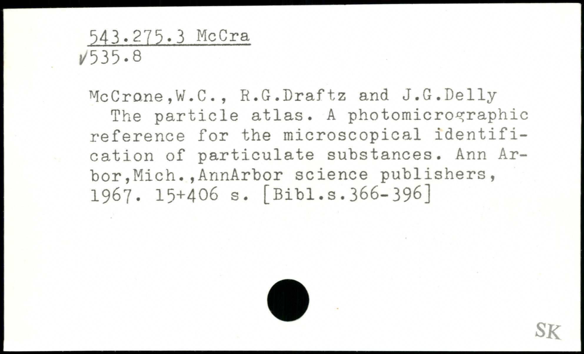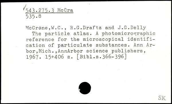 McCrone,W.C., R.G.Draftz and J.G.Delly The particle atlas. A photomicro^raphic reference for the microscopical identification of particulate substances.