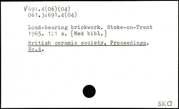 Load-bearing brickwork. Stoke-on-Trent 1965.