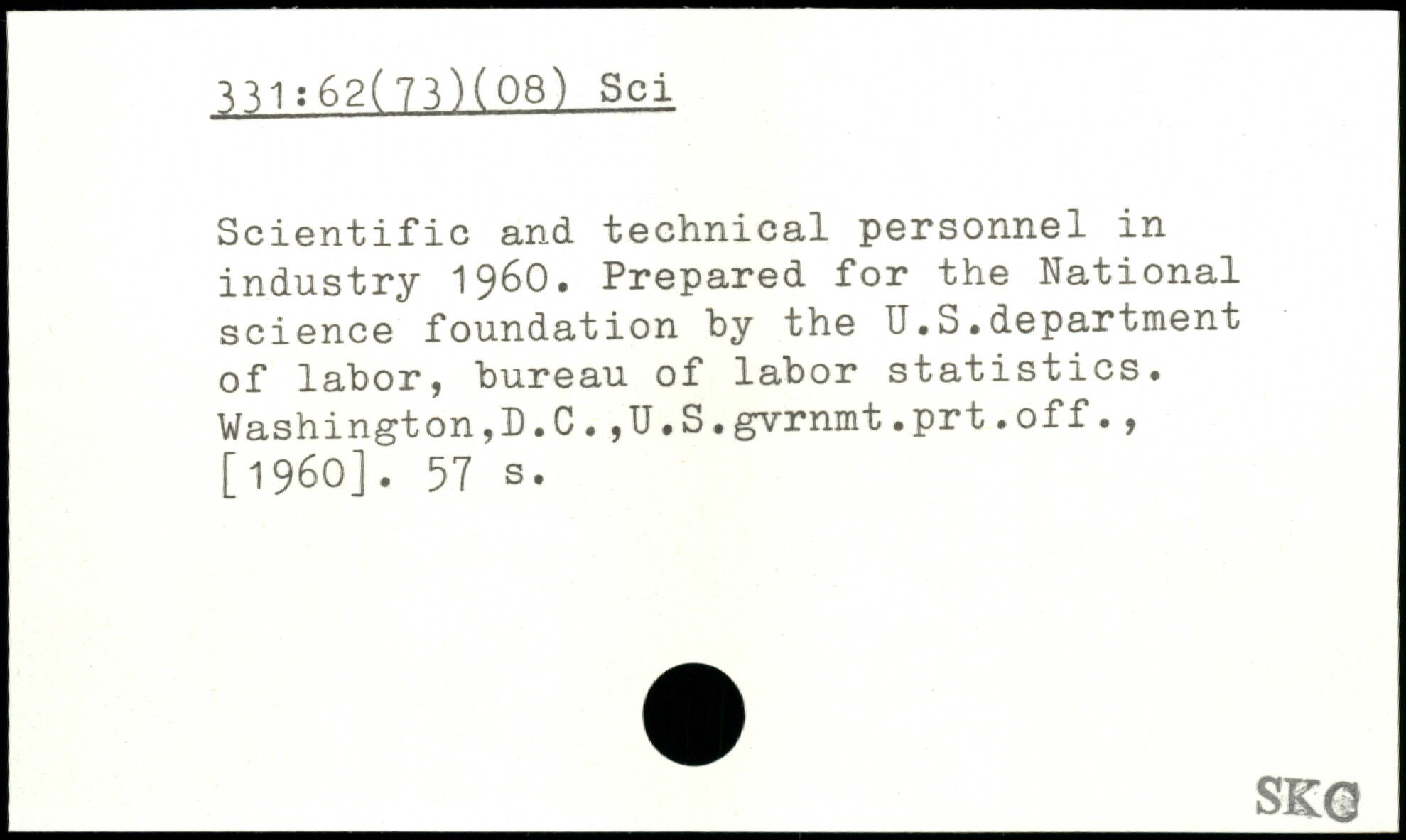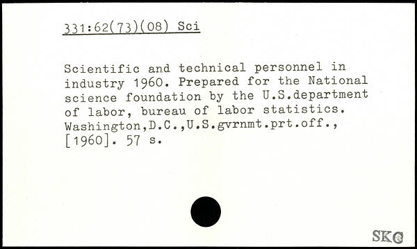 Scientific and technical personnel in industry 1960. Prepared for the National science foundation by the U.S.department of labor, bureau of labor statistics. Washington,D.C.,U.S.gvrnmt.prt.off.,