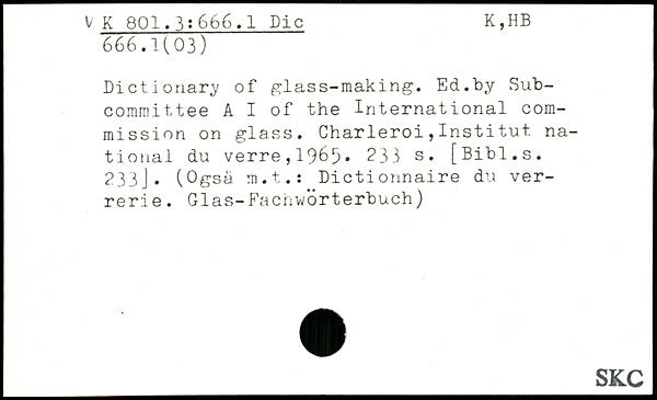 Dictionary of glass-making. Ed.by Subcommittee A I of the International commission on glass.