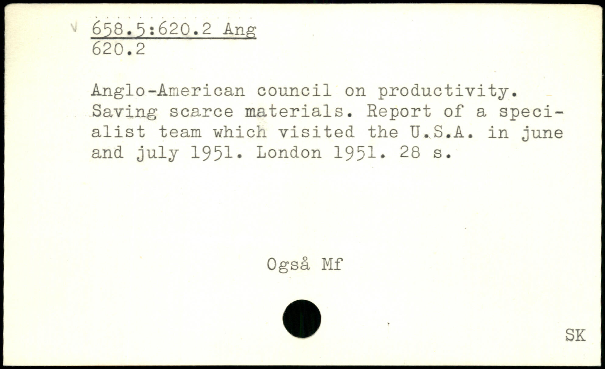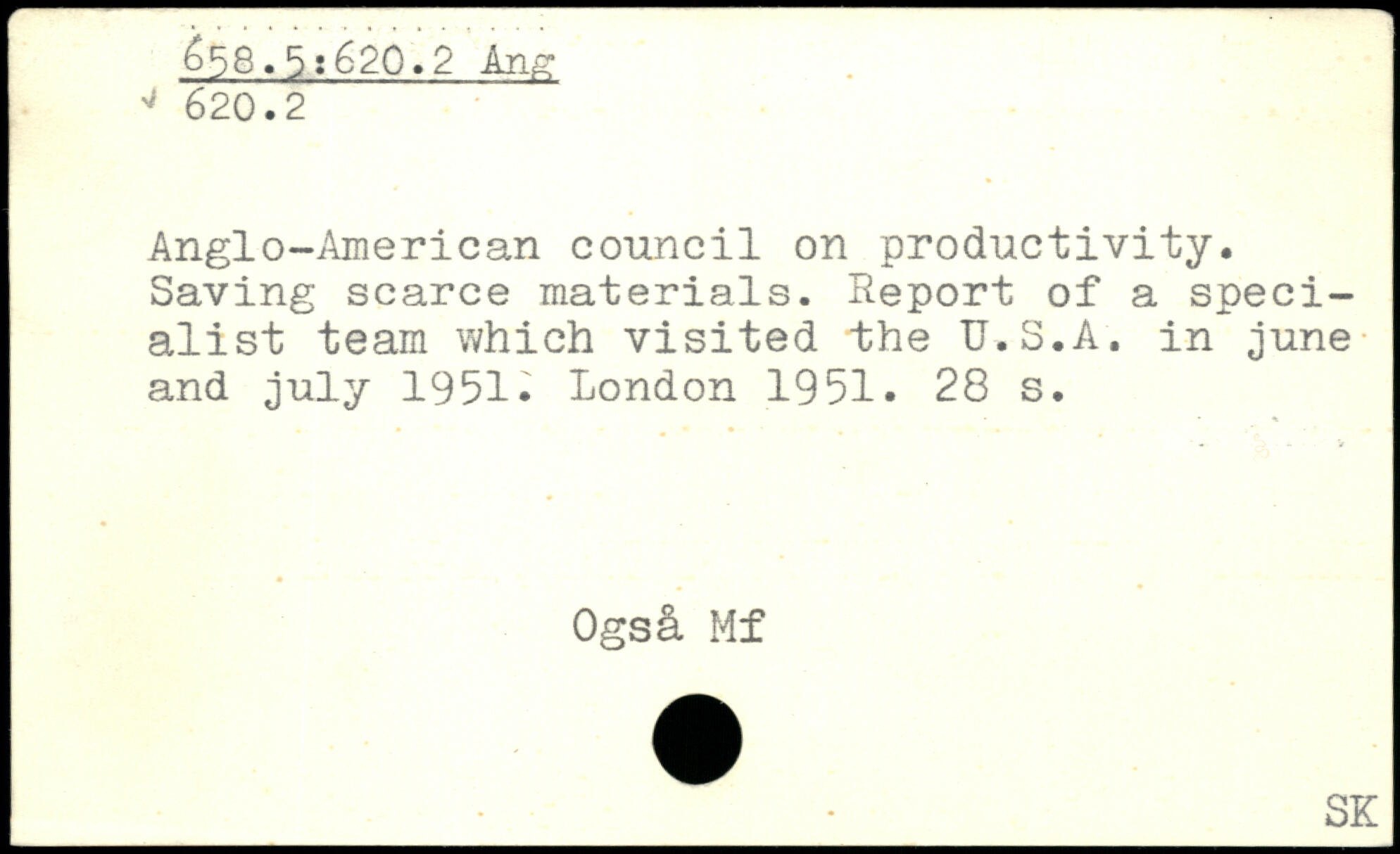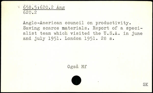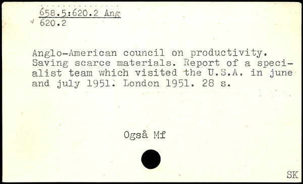 Anglo-American council on productivity. Saving scarce materials. Report of a specialist team which visited the U.S.A. in june and July 1951.