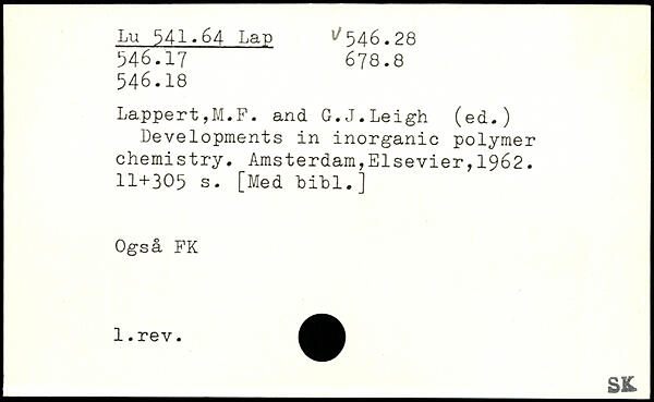 ForsideBøgerDevelopments in inorganic polymer chemistry.