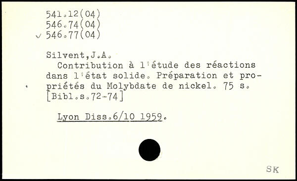 Contribution à l5etude des reactions dans 13 état solide. Préparation et pro-. priétés du Molybdate de nickelo