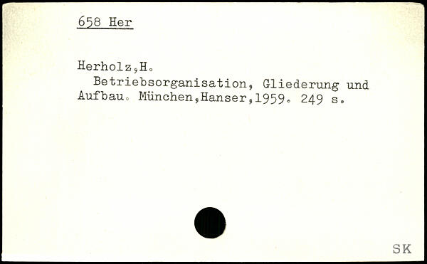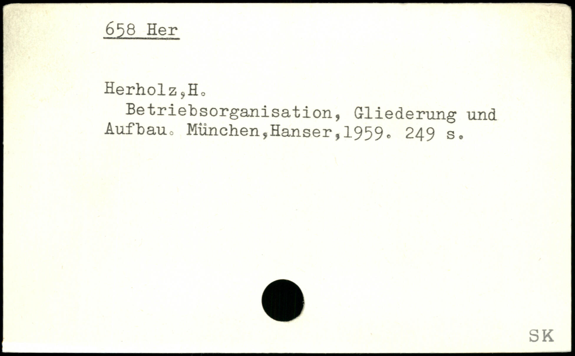 Betriebsorganisation, Gliederung und Aufbauo München,Hanser,19590 249 s