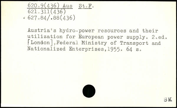 Austrians hydro-power resources and their utilization for European power supply, 2,ed0 [London],Federal Ministry of Transport and Nationalized Enterprises,1955.