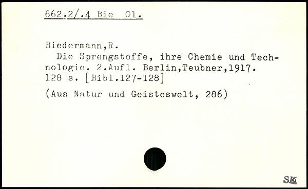 Die Sprengstoffe, ihre Chemie und Technologie. R.Aufl.