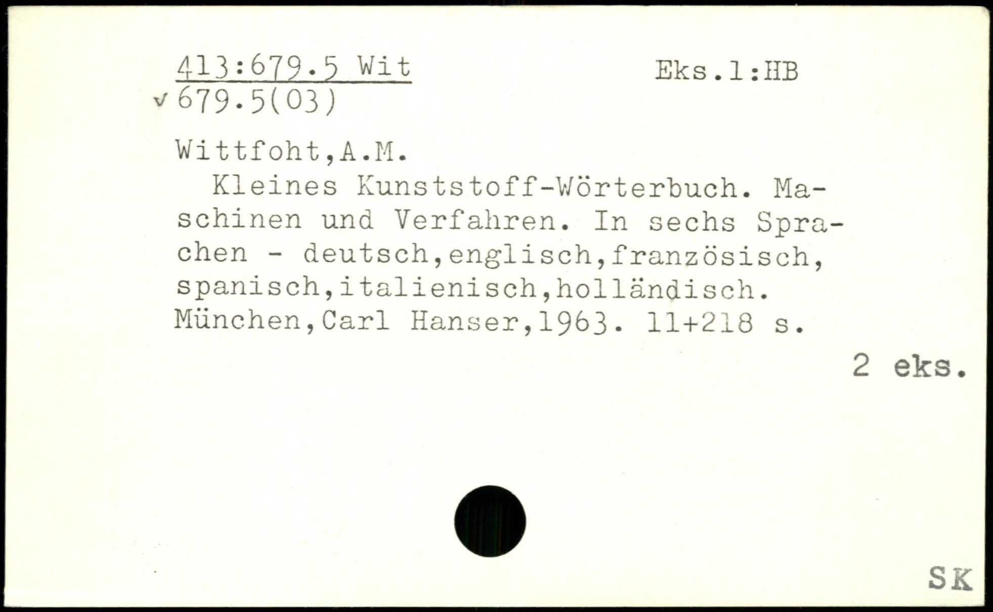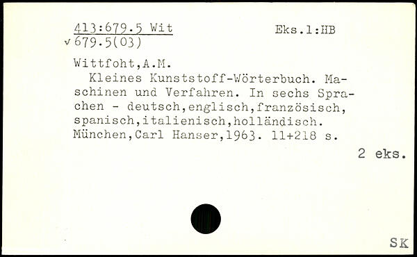 Kleines Kunststoff-Wörterbuch. Maschinen und Verfahren. In sechs Sprachen - deutsch,englisch,französisch, spanisch,italienisch,holländisch.