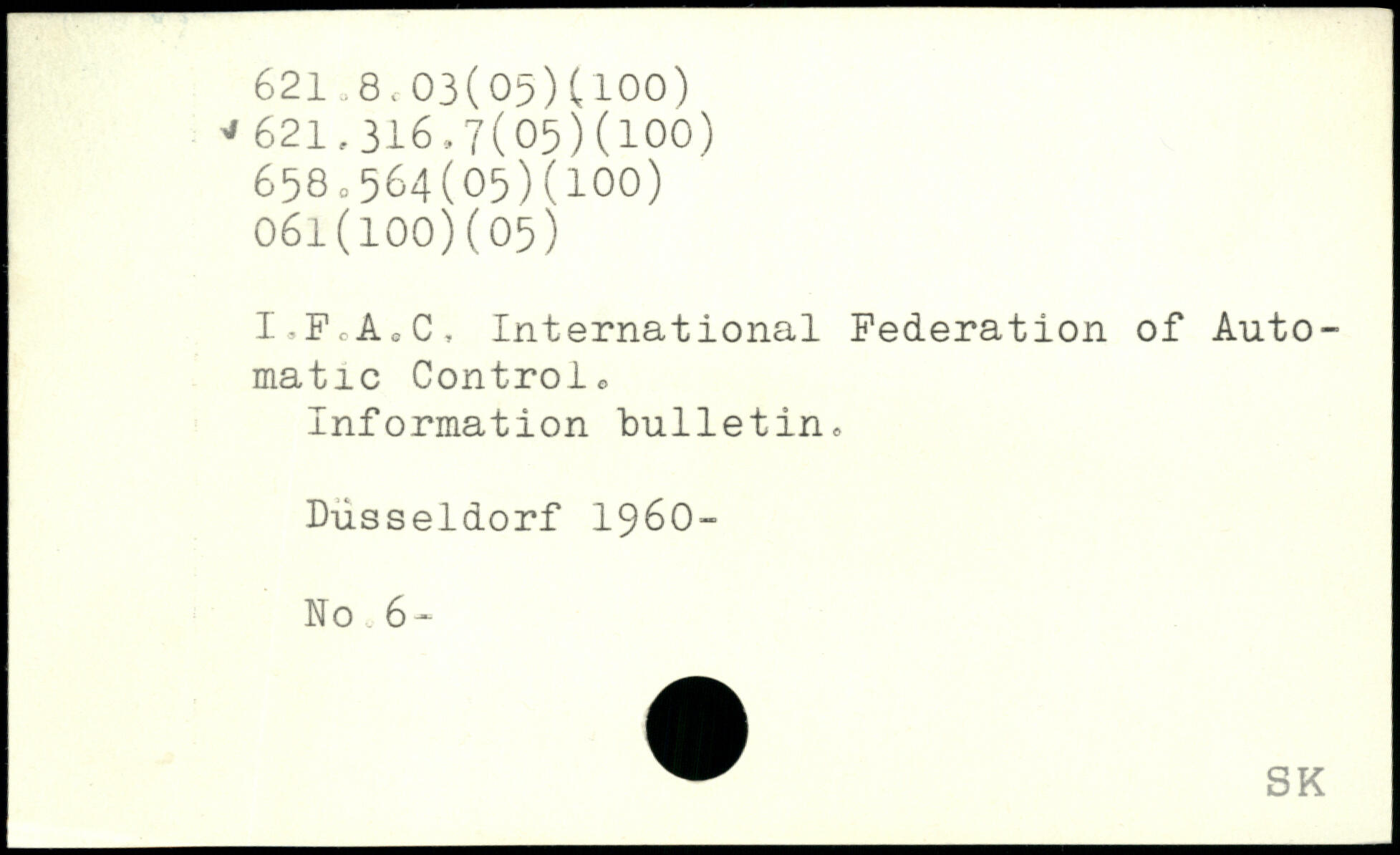 I-PcAoC, International Federation of Automatic Contrôle Information bulletin. Dusseldorf 1960- No 6.
