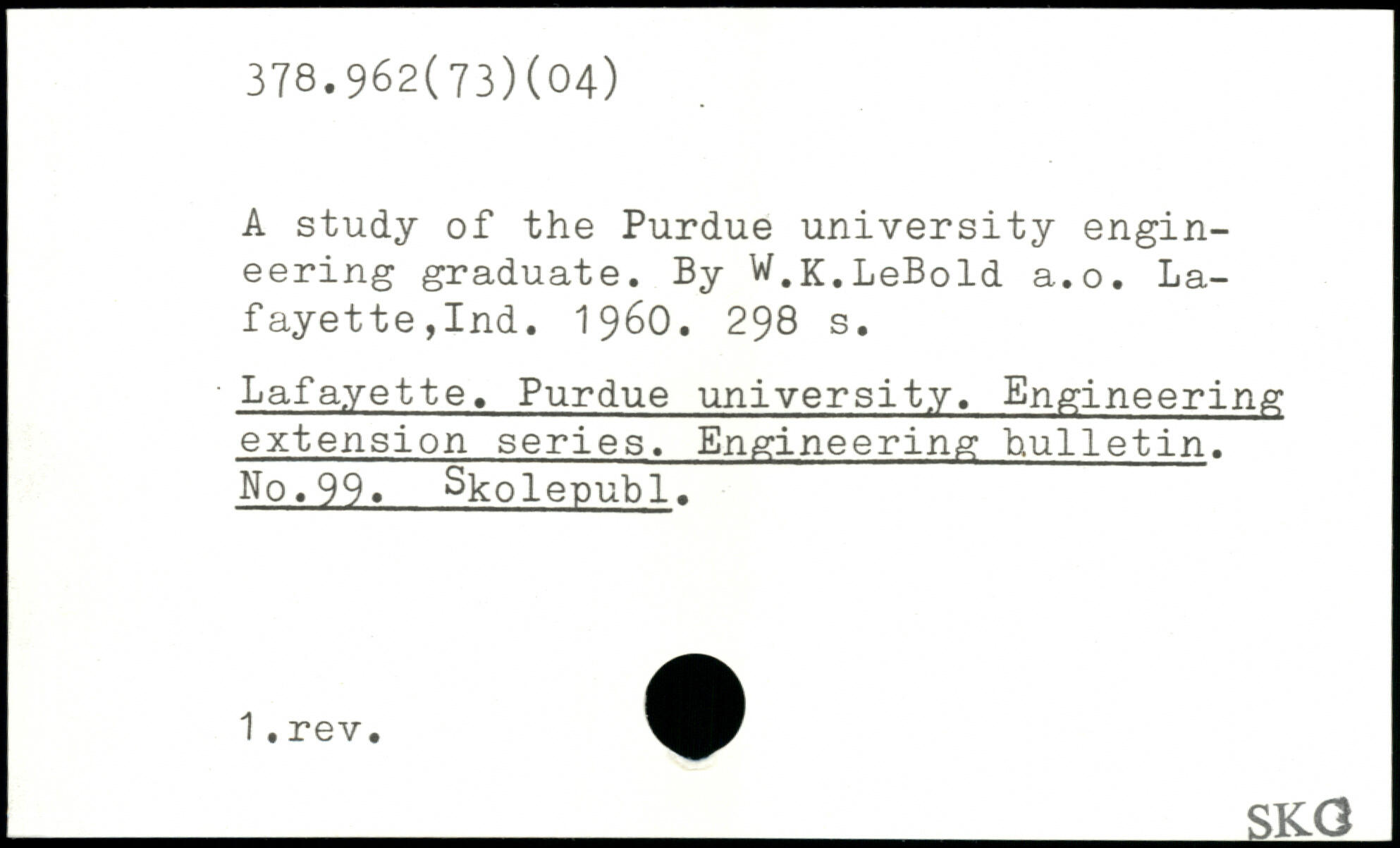 A study of the Purdue university engineering graduate. By W.K.LeBold a.o. Lafayette,Ind. 1960.
