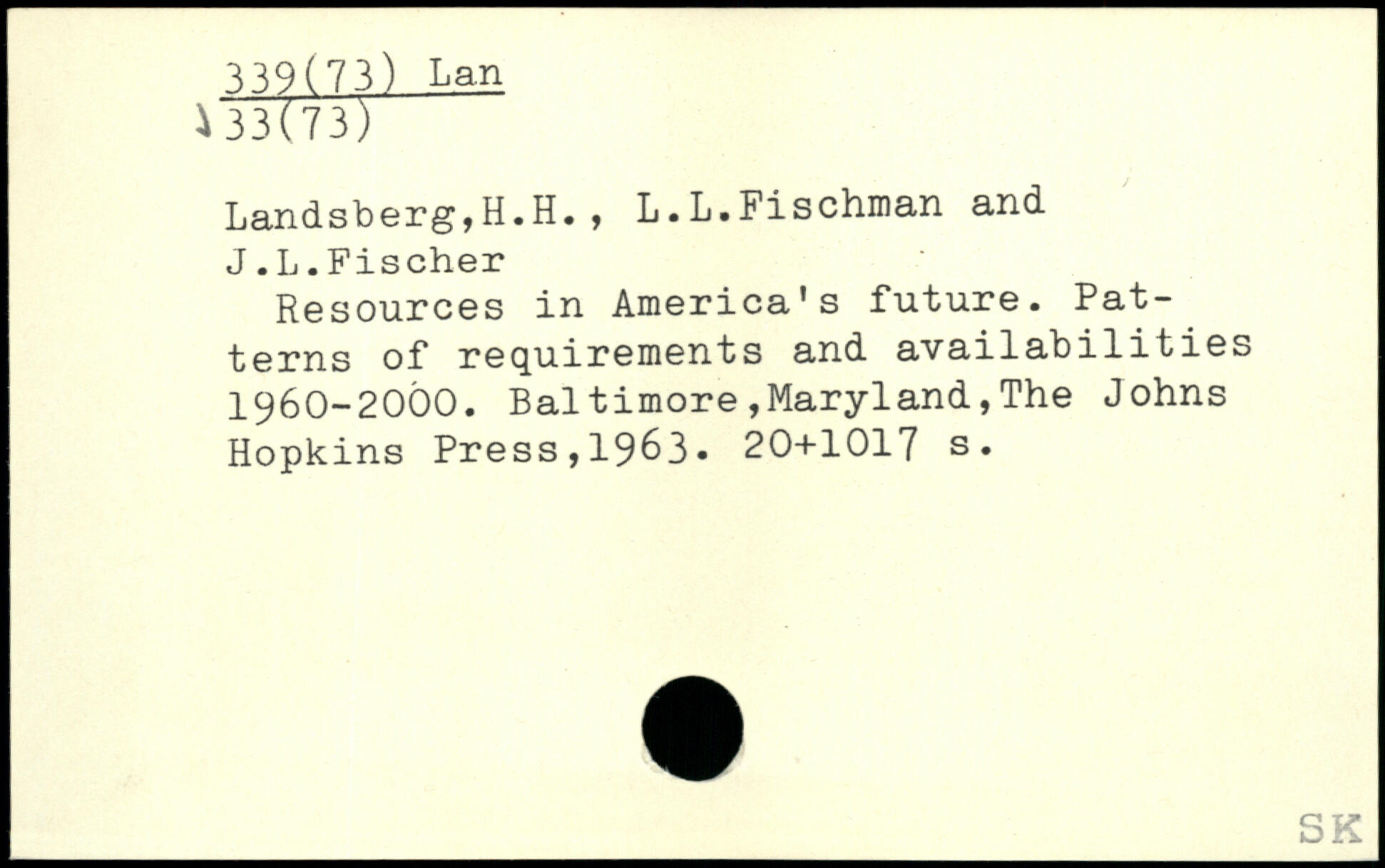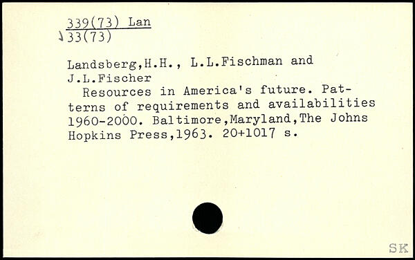 Resources in America's future. Patterns of requirements and availabilities 1960-2000.