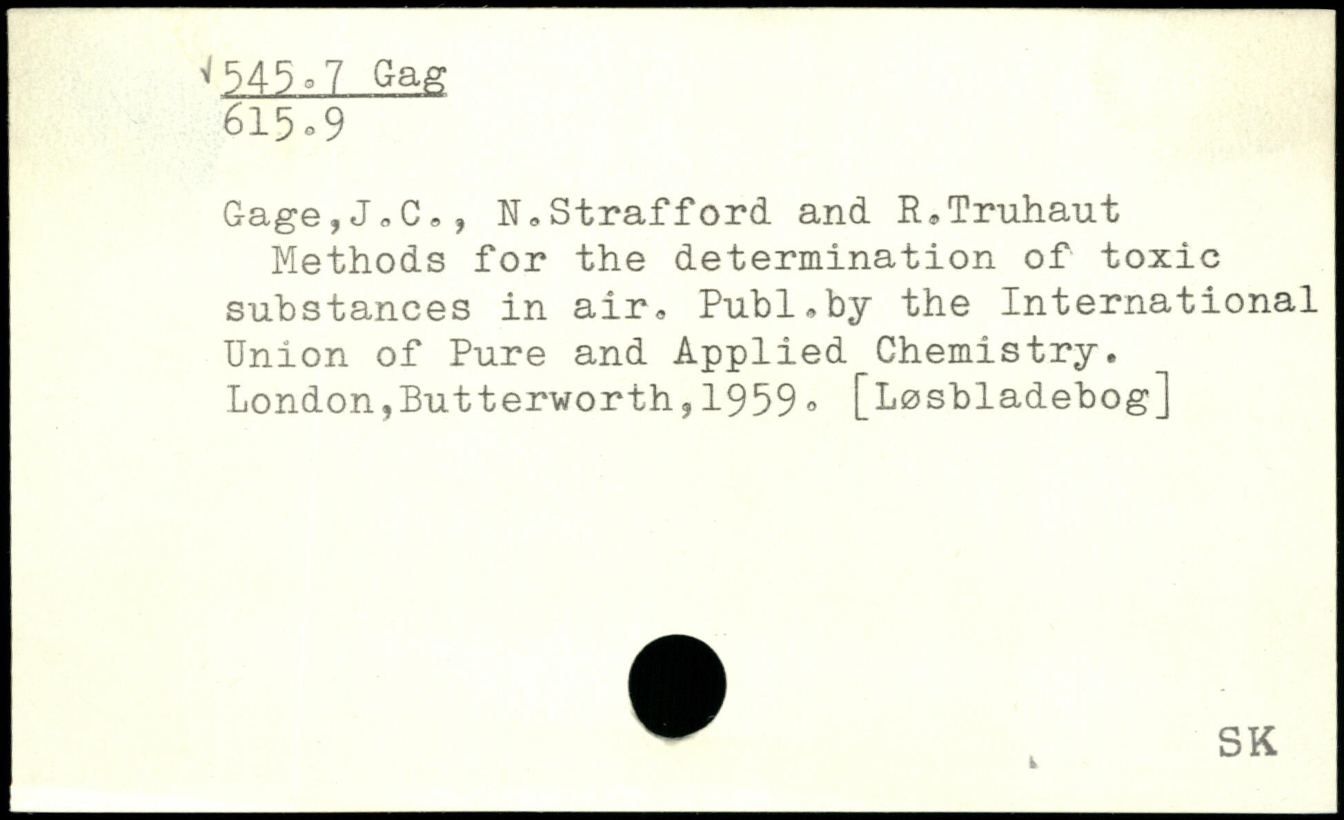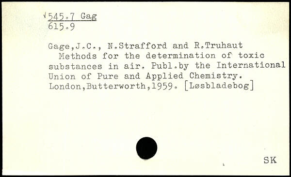 Gage, J n C, , N, Strafford and R,Truhaut Methods for the determination of toxic substances in air