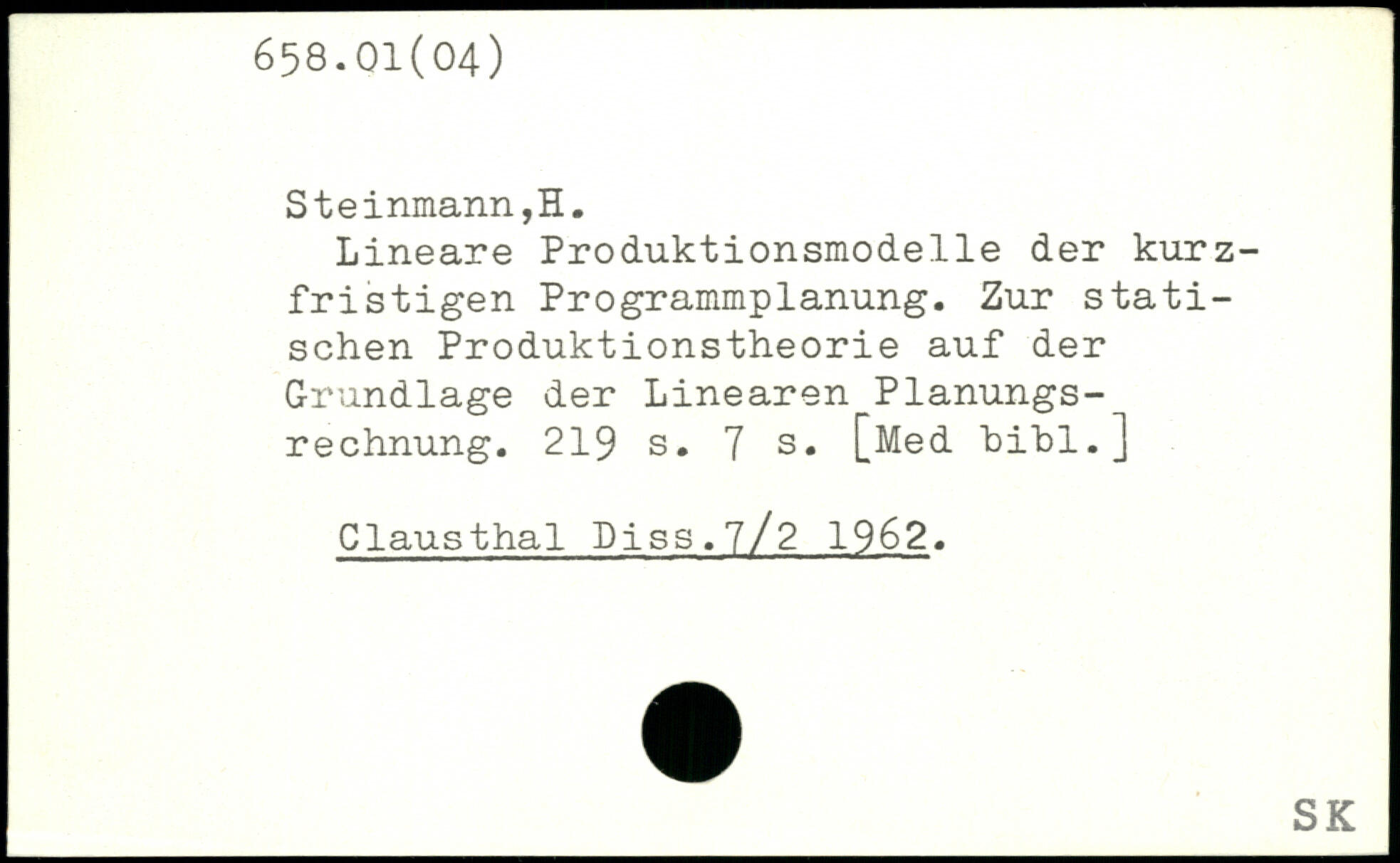 Lineare Produktionsmodelle der kurzfristigen Programmplanung. Zur statischen Produktionstheorie auf der Grundlage der Linearen Planungsrechnung.