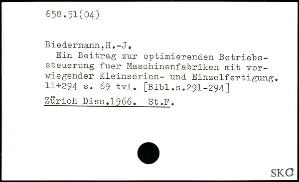 Ein Beitrag zur optimierenden Betriebs-Steuerung fuer Maschinenfabriken mit vorwiegender Kleinserien- und Einzelfertigung.