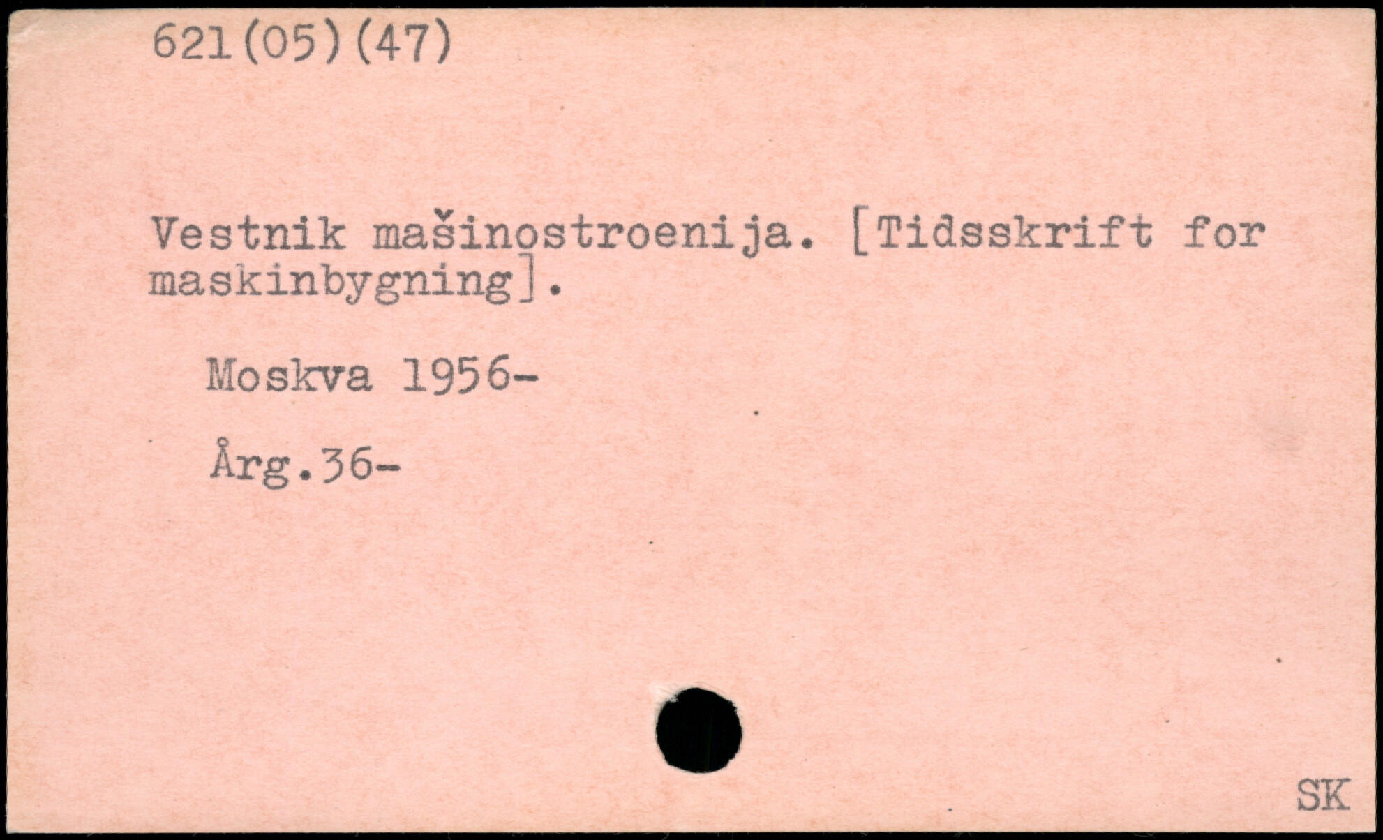 Vestnik masinostroenija. [Tidsskrift for maskinbygning].