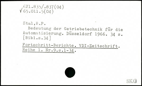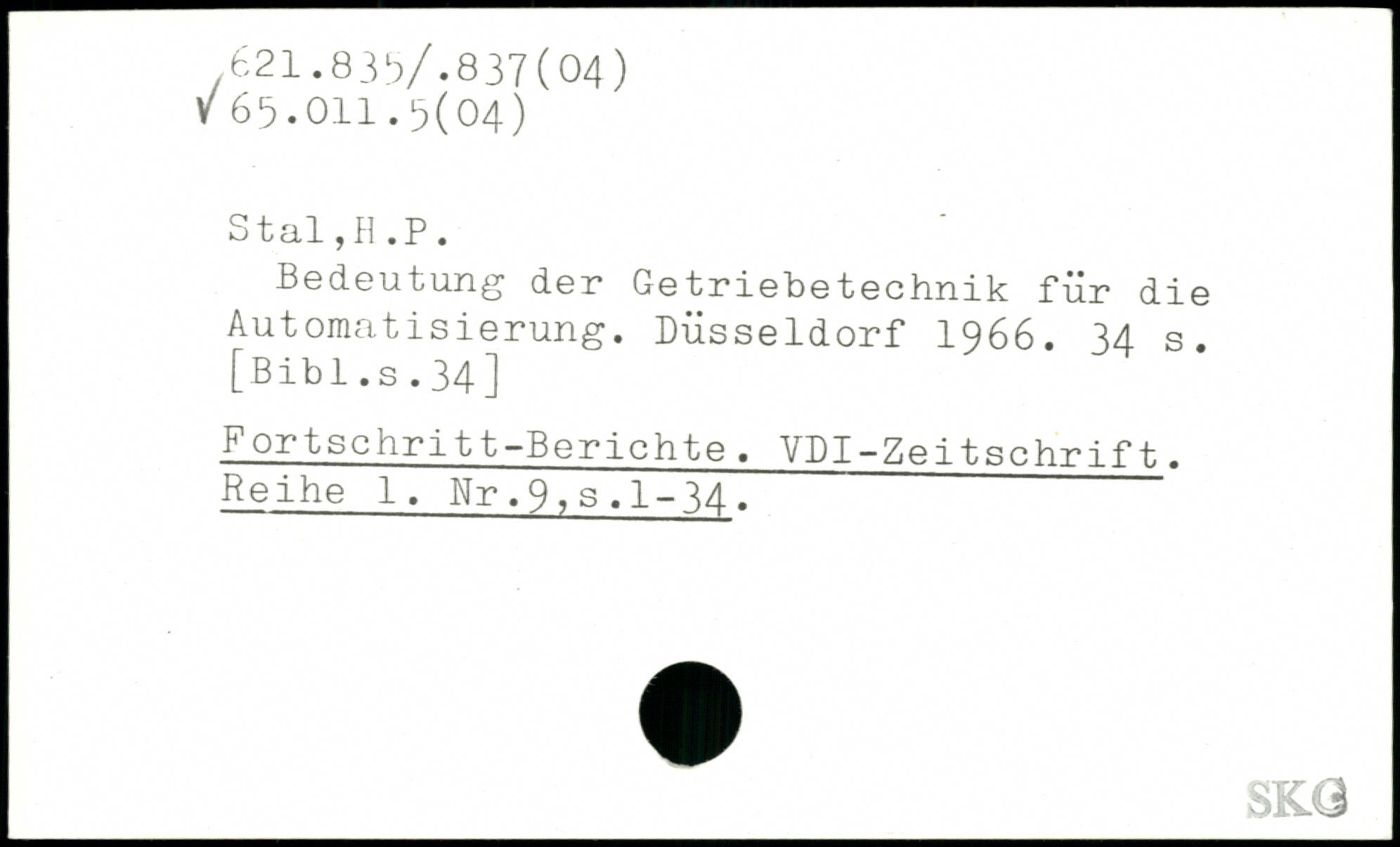 Bedeutung der Getriebetechnik für die Automatisierung. Düsseldorf 1966.