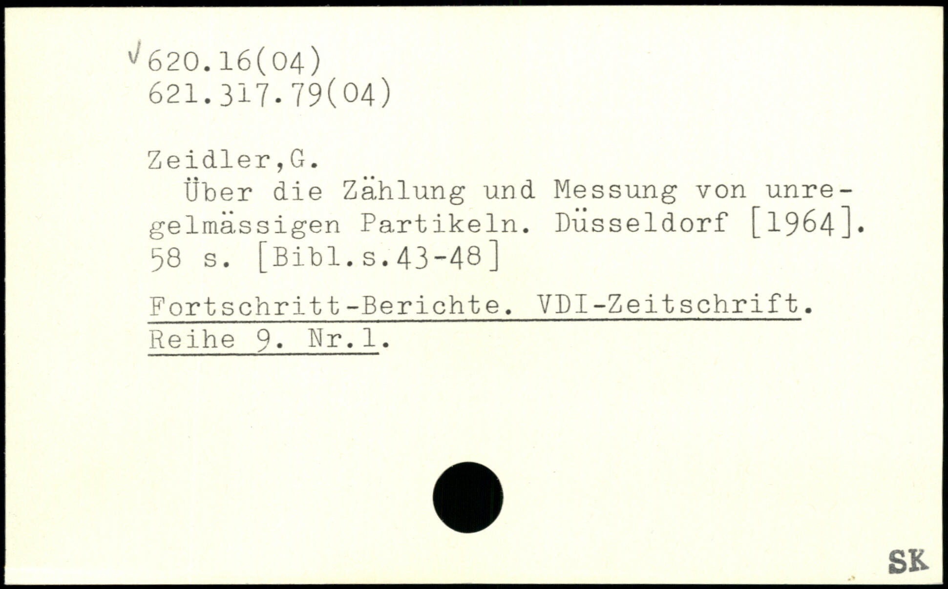 Über die Zählung und Messung von unregelmässigen Partikeln. Düsseldorf [1964]