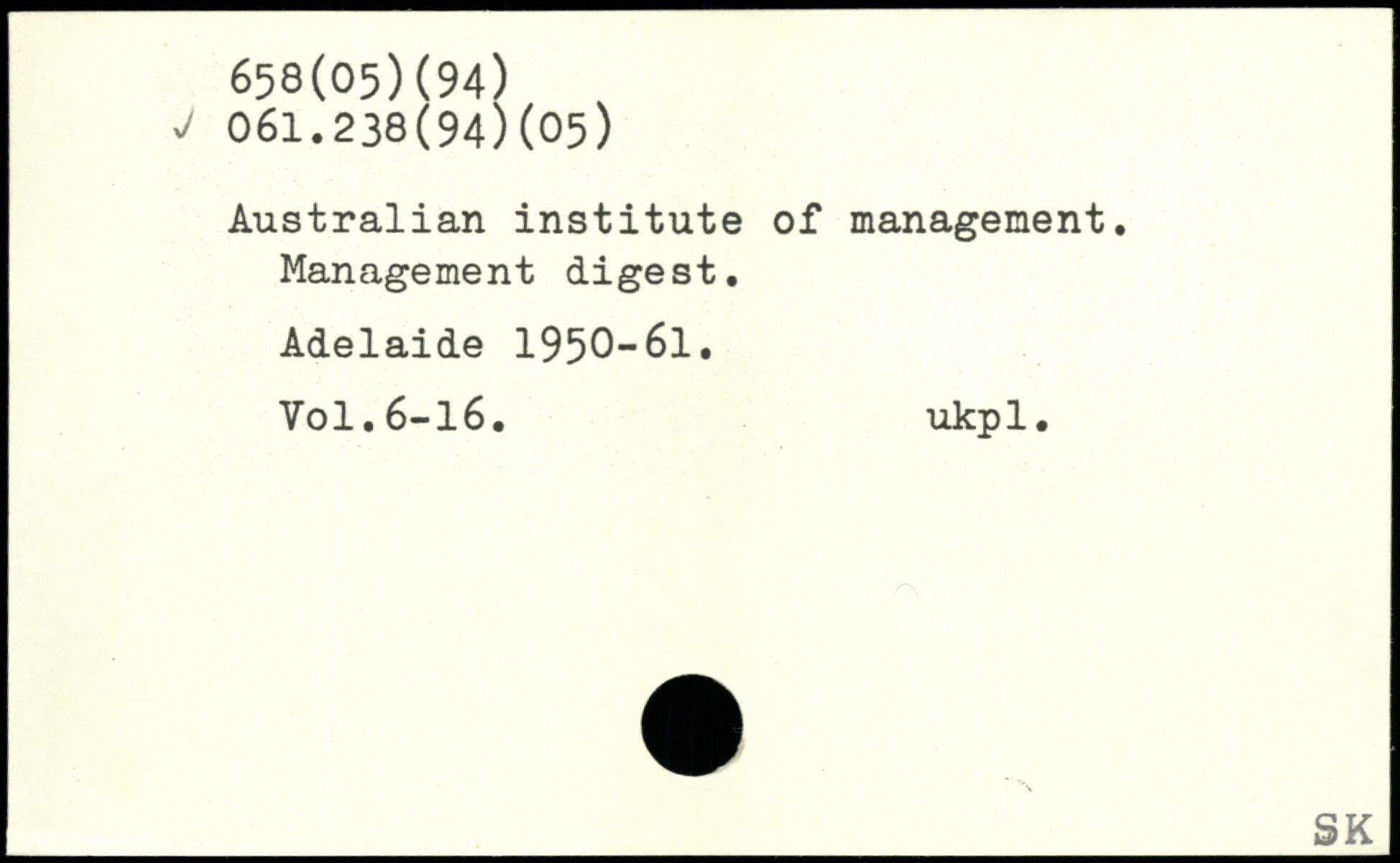Australian institute of management. Management digest. Adelaide 1950-61. Yol.6-16. ukpl.