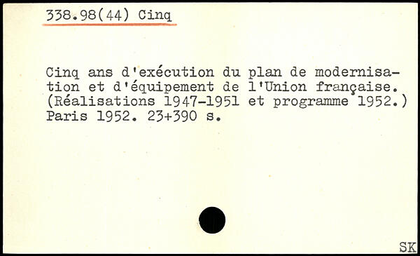 Cinq ans d'exécution du plan de modernisation et d'équipement de l'Union française. (Réalisations 1947-1951 et programme 1952.)