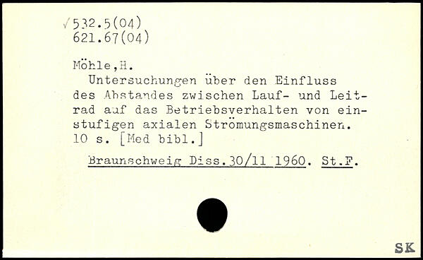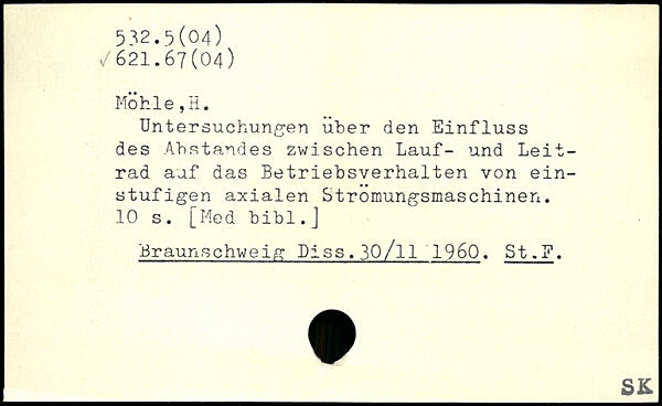 Untersuchungen über den Einfluss des Abstandes zwischen Lauf- und Leitrad auf das Betriebsverhalten von einstufigen axialen Strömungsmaschinen.
