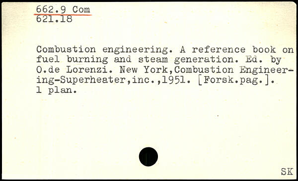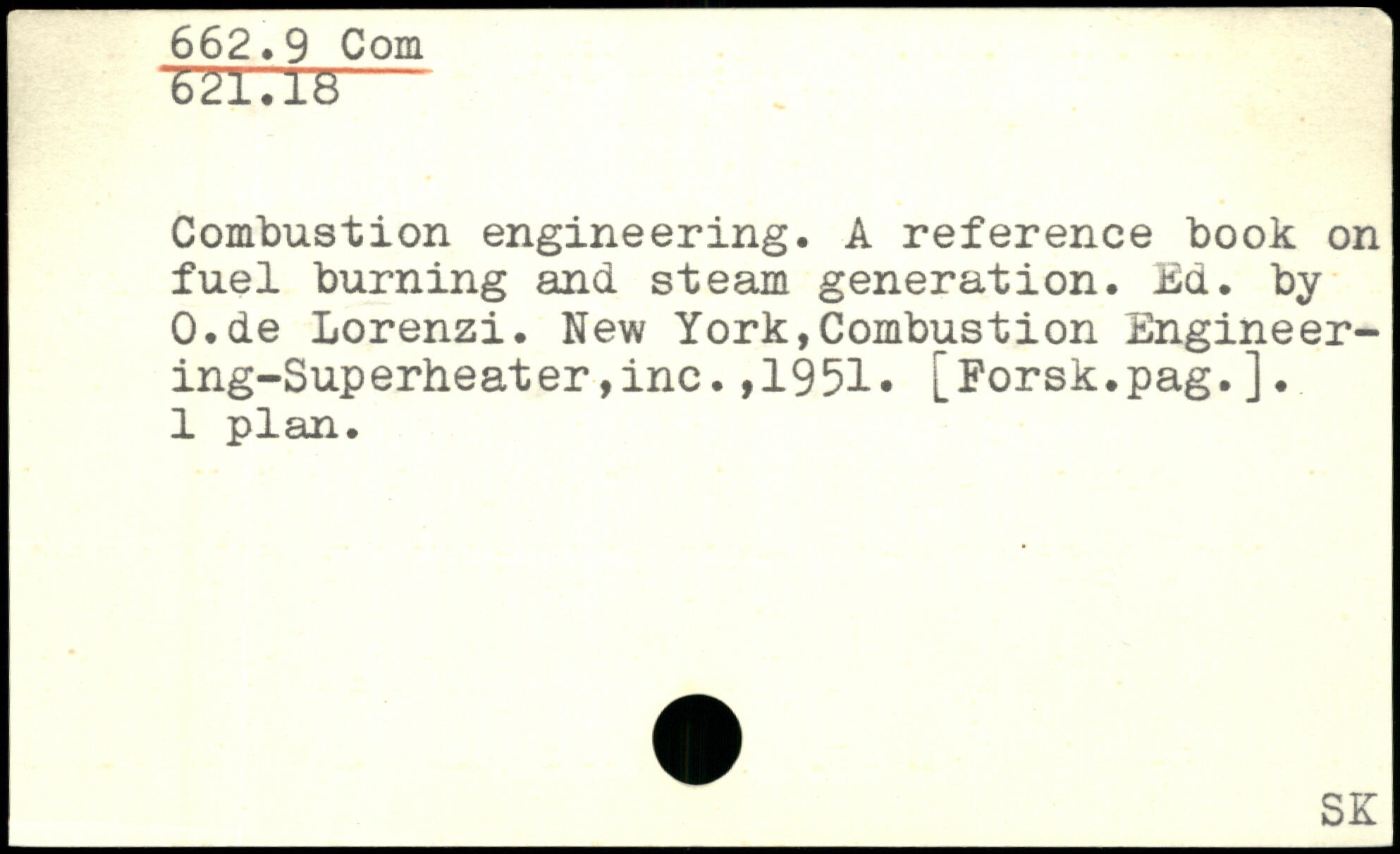 Combustion engineering. A reference book on fuel burning and steam generation. Ed. by O.de Lorenzi. New York,Combustion Engineering-Superheater ,inc. ,1951. [Forsk.pag.]. 1 plan.