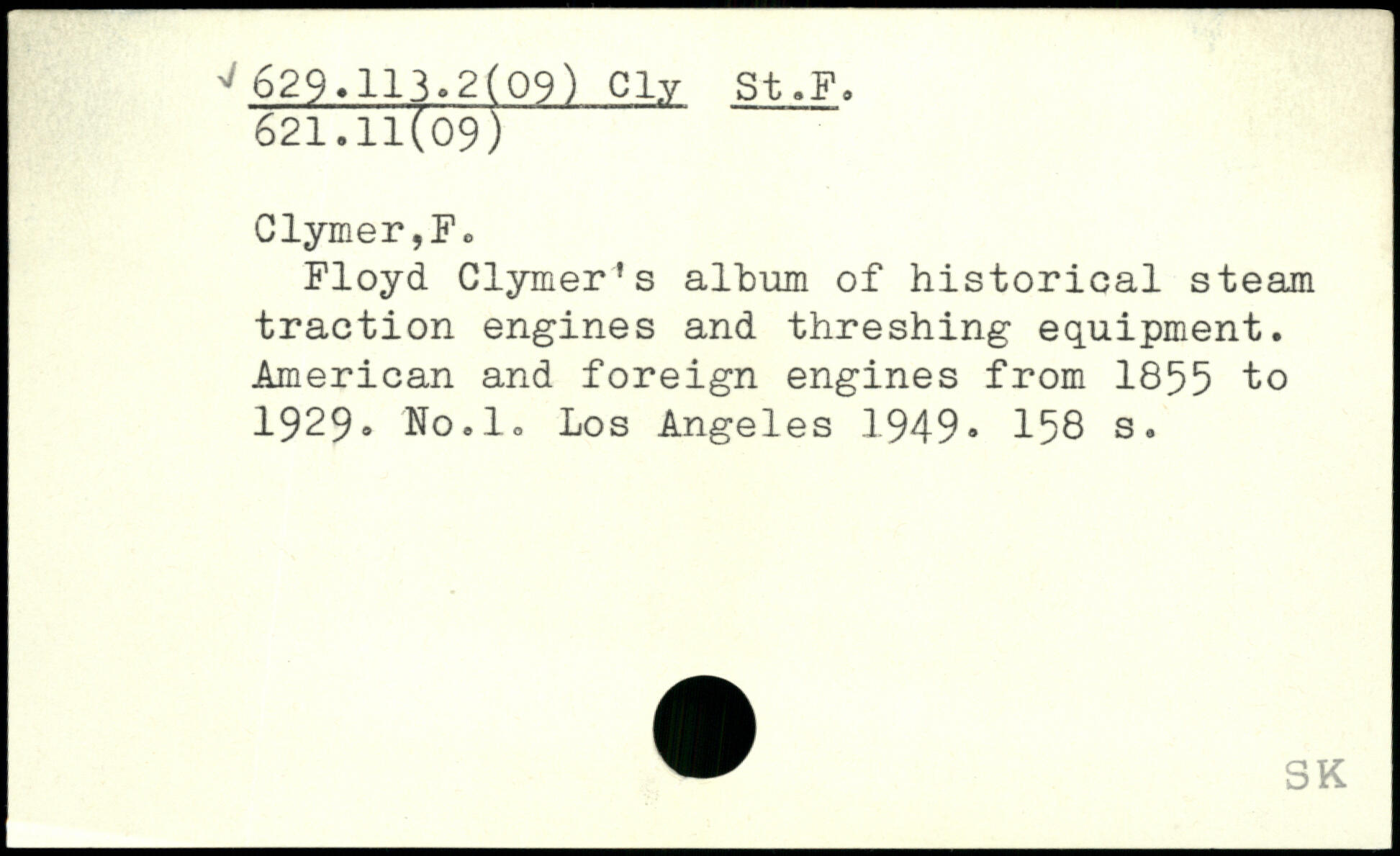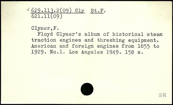 Floyd Clymer’s album of historical steam traction engines and threshing equipment. American and foreign engines from 1855 to 1929® No.lo Los Angeles 1949®
