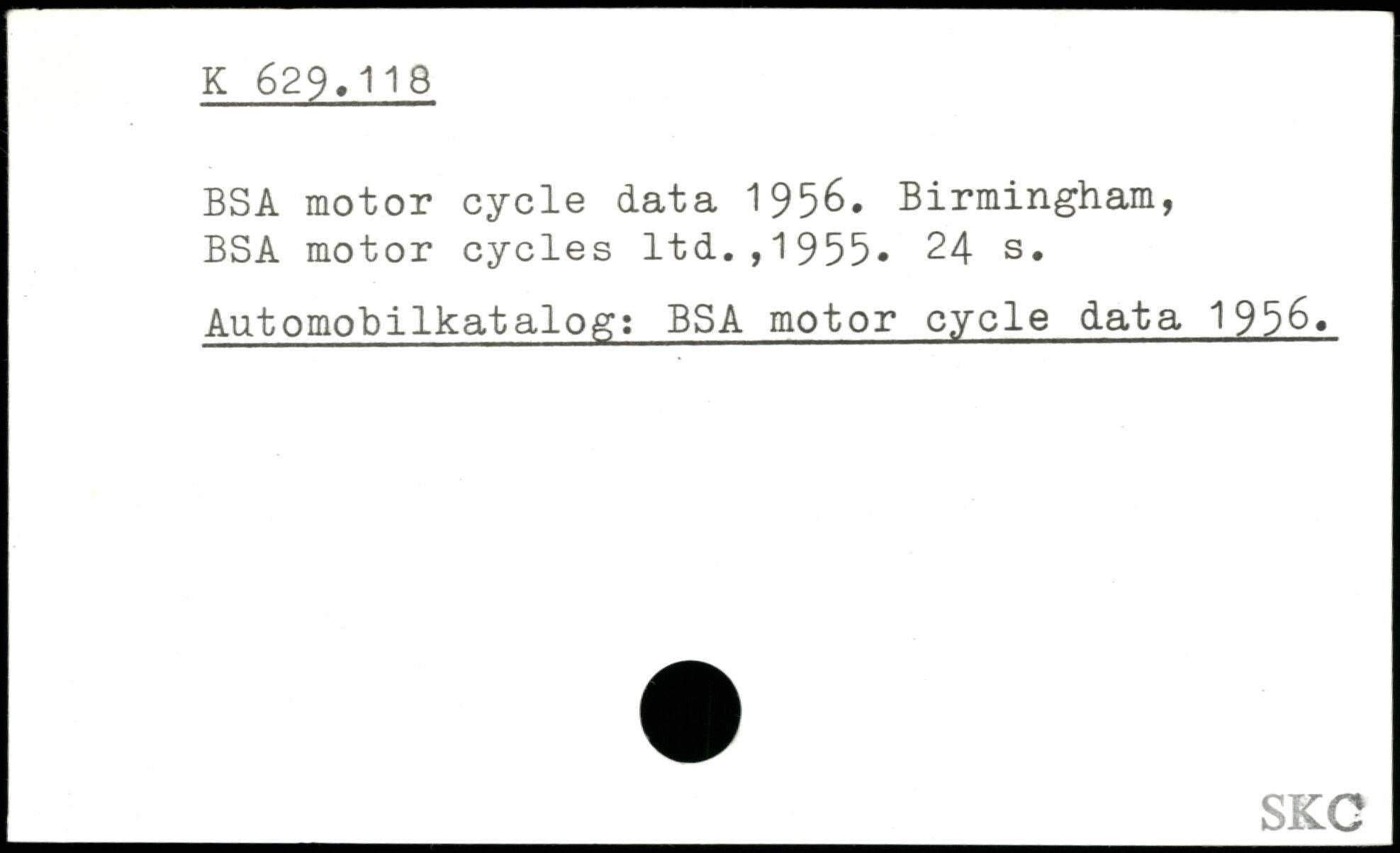 BSA motor cycle data 1956.