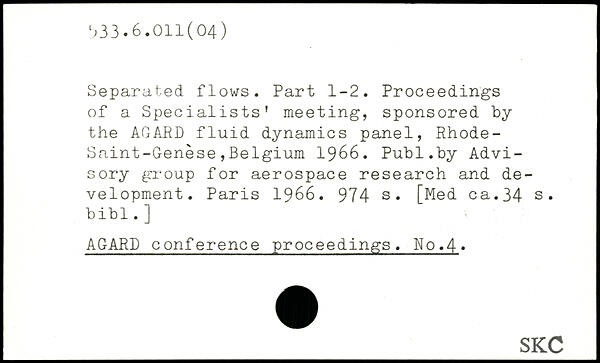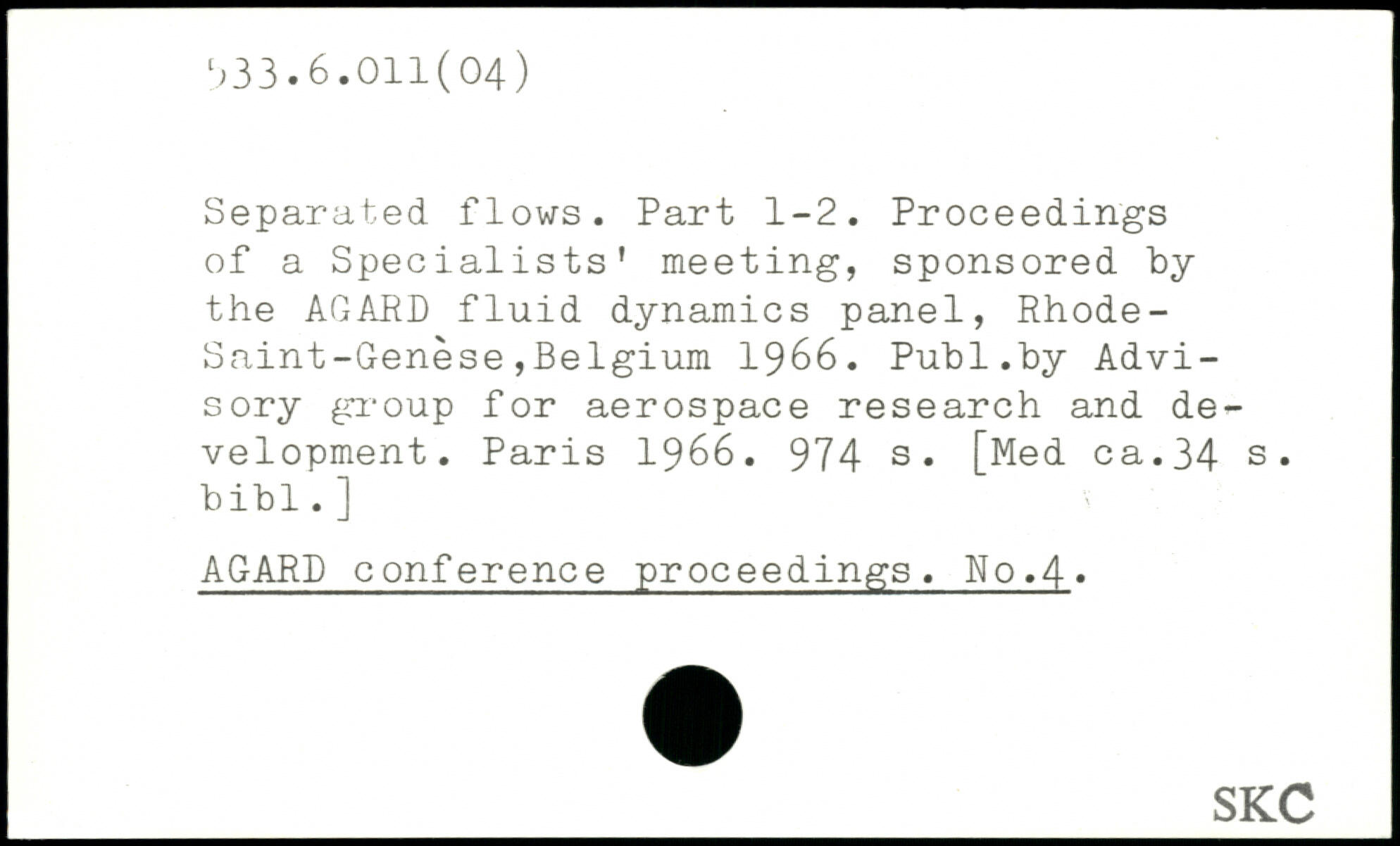 Separated flows. Part 1-2. Proceedings of a Specialists’ meeting, sponsored by the AGARD fluid dynamics panel, Rhode-Saint-Genese