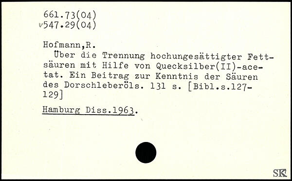 <über die Trennung hochungesättigter Fettsäuren mit Hilfe von Quecksilber(ll)-ace-tat. Ein Beitrag zur Kenntnis der Säuren des Dorschleberöls.
