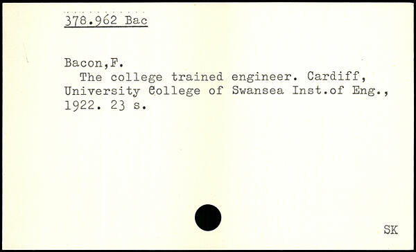 The college trained engineer. Cardiff, University College of Swansea Inst.of Eng., 1922.