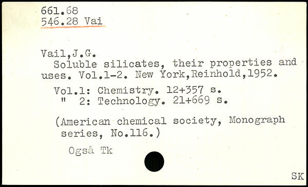 Vail, J.Gr. Soluble silicates, their properties and uses.