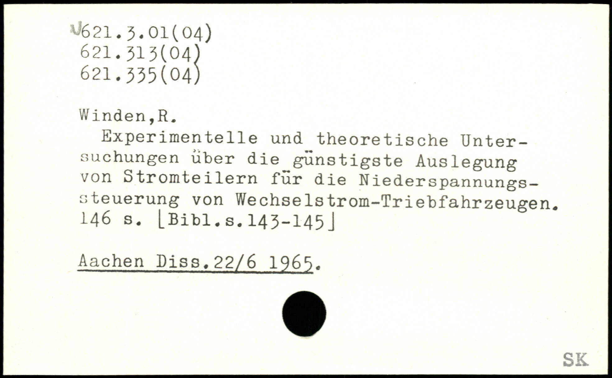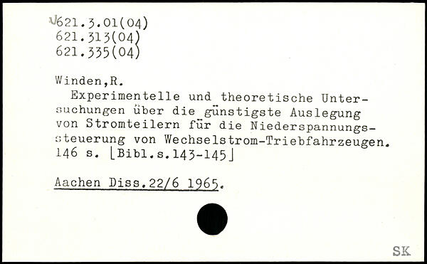Experimentelle und theoretische Untersuchungen über die günstigste Auslegung von Stromteilern für die Niederspannungs-steuerung von Wechselstrom-Triebfahrzeugen.
