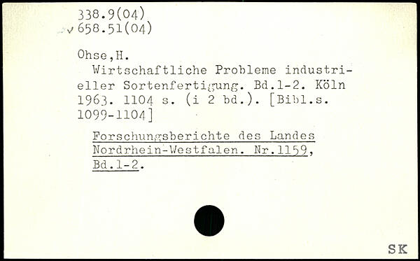 Wirtschaftliche Probleme industrieller Sortenferti^^ung.