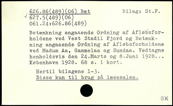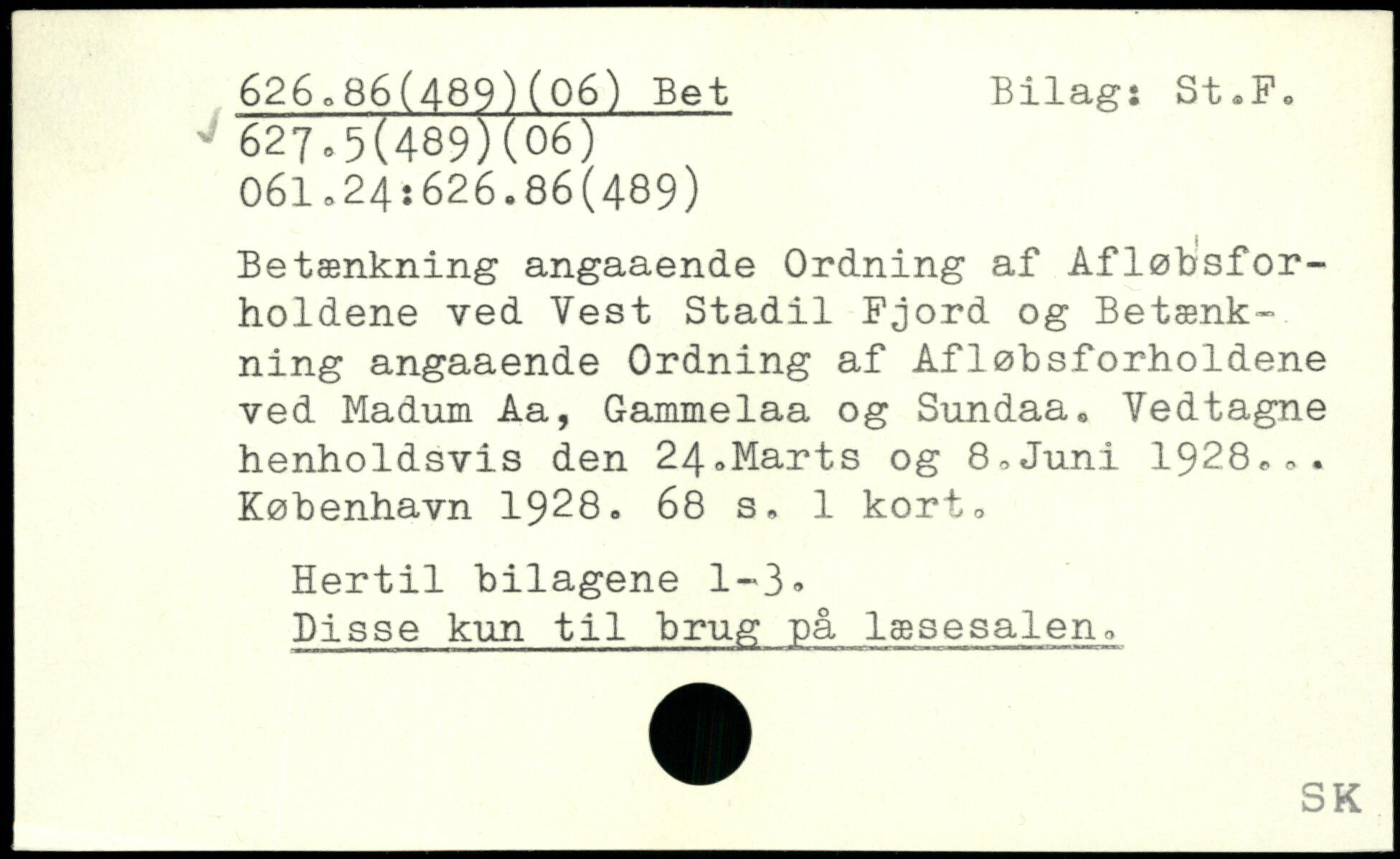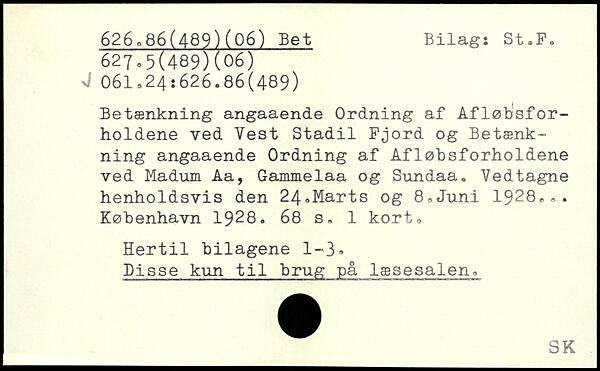 Betænkning angaaende Ordning af Afløbsforholdene ved Yest Stadil Fjord og Betænkning angaaende Ordning af Afløbsforholdene ved Madum Aa, Gammelaa og Sundaa. Vedtagne henholdsvis den 24,Marts og 8. Juni 1928...