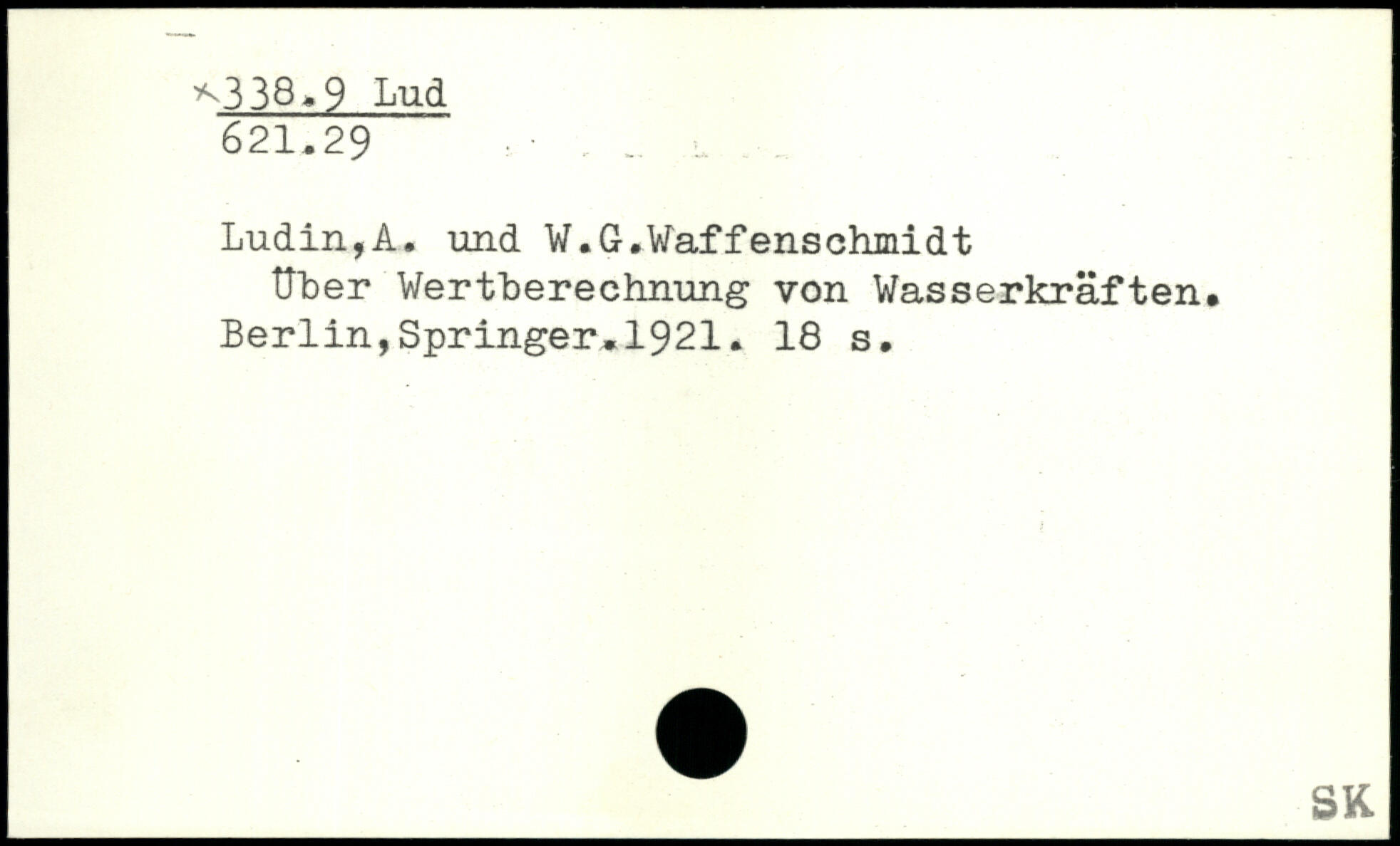 Ludin,A, und W.G.Waffenschmidt Über Vertberechnung von Wasserkräften.