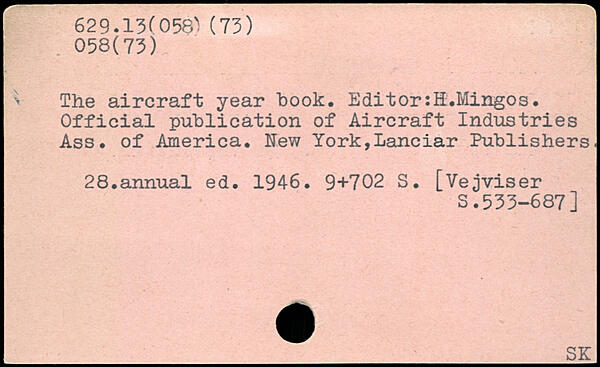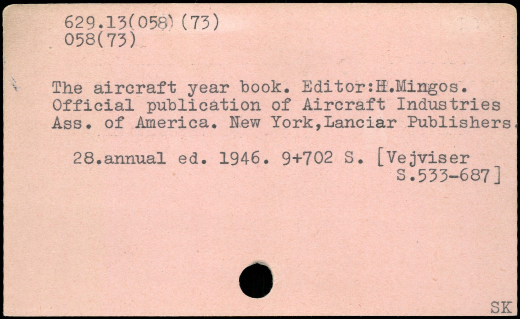 The aircraft year book. Editor:H.Mingos. Official publication of Aircraft Industries Ass. of America. New York,Lanciar Publishers. 28.annual ed. 1946.