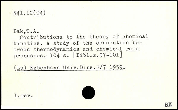 Contributions to the theory of chemical kinetics. A study of the connection between thermodynamics and chemical rate processes.
