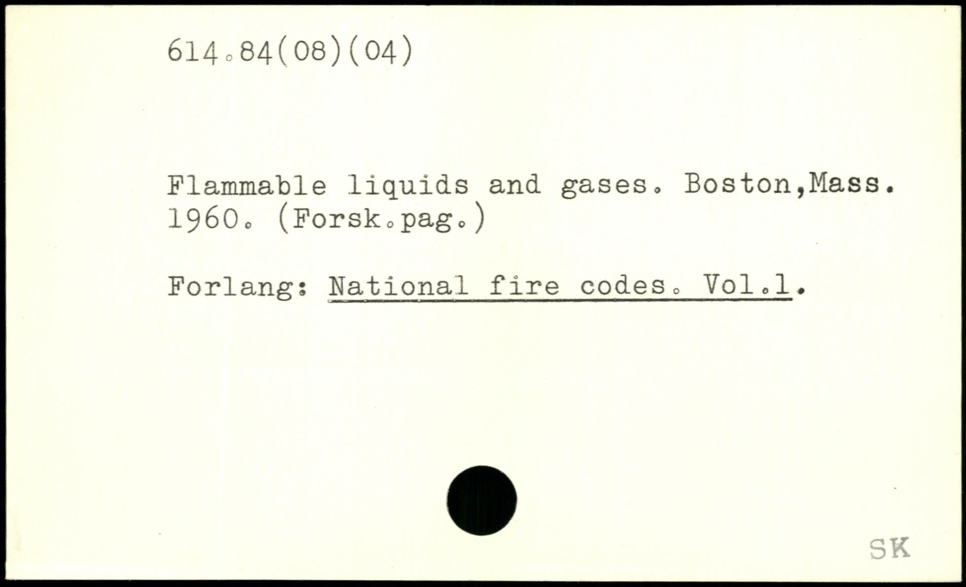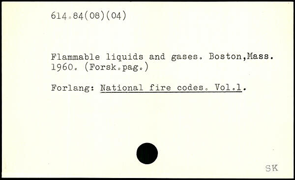 Flammable liquids and gases. Boston,Mass. 1960. (Forskcpago) Forlang; National fire codes, Void.