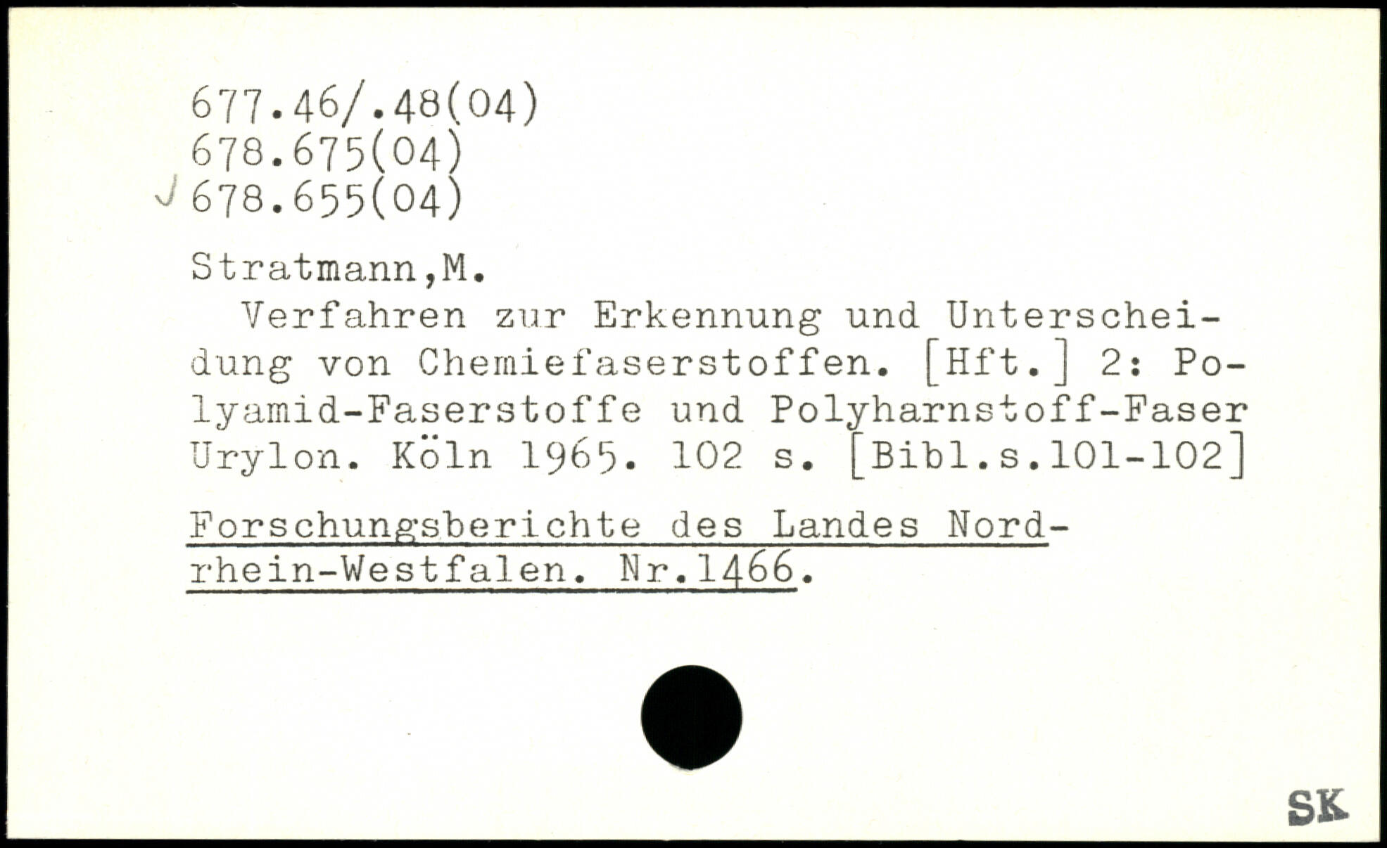 Verfahren zur Erkennung und Unterscheidung von Cheraiefaserstoffen.